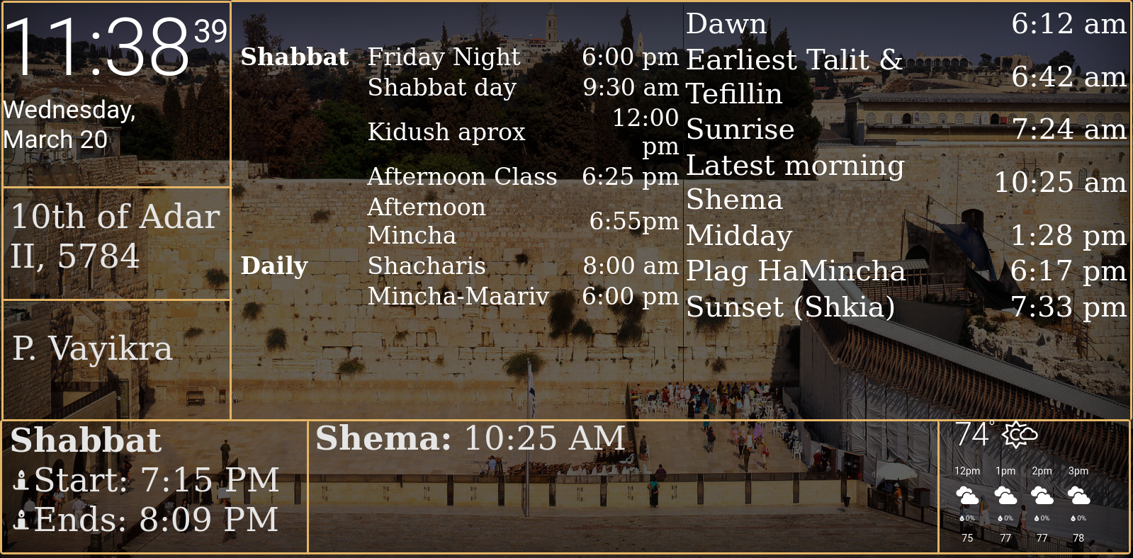 Powerful, complete & friendly Computerized Electronic Synagogue Board appliance. Fully customized. Friendly Data entry and maintenance via Dashboard. Constantly updated.